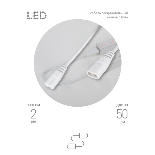 ЭРА FT-C7-С8-0,5 - соединительный кабель для подключения нескольких светильников в единую цепь. Подходит для серий линейных фитосветильников ЭРА FITO Т5-N и ЭРА Т5-Ra90. Длина кабеля 50 см. Двужильный кабель ПВС 2х05 мм2. Двойной штекер IEC 60320 С7 на двойной разъем IEC 60320 С8.