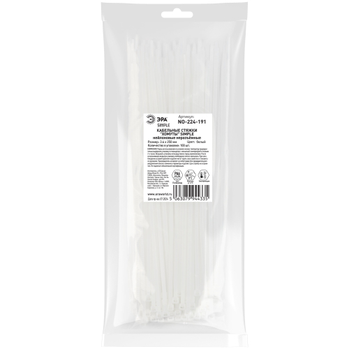 Нейлоновые хомуты (кабельные стяжки) ЭРА SIMPLE обладают неразъёмным замковым механизмом одностороннего действия.