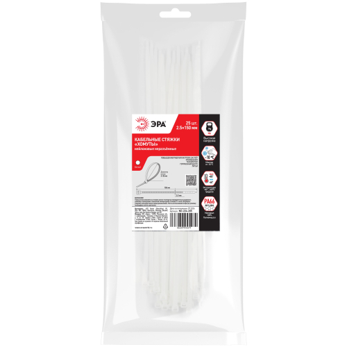 Нейлоновые хомуты (кабельные стяжки) ЭРА обладают неразъёмным замковым механизмом одностороннего действия.
