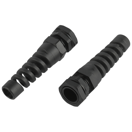 Кабельные вводы (сальники) c гибким отводом серии PGR состоят из гайки-фиксатора, уплотнительного кольца, корпуса, фиксирующего зажима, сальника и прокладки, спирального гибкого отвода. Удлиненный спиралевидный отвод служит для защиты проводника от перегибов и механических повреждений в месте ввода-вывода. Устанавливаются в местах ввода-вывода проводников в электроустановку и защищают от проникновения вовнутрь пыли и влаги по стандарту IP54.
