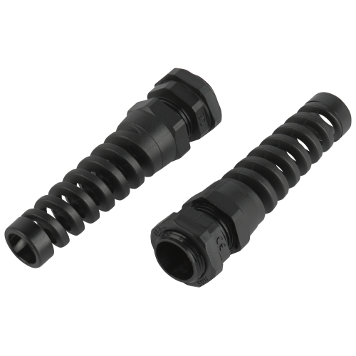 Кабельные вводы (сальники) c гибким отводом серии PGR состоят из гайки-фиксатора, уплотнительного кольца, корпуса, фиксирующего зажима, сальника и прокладки, спирального гибкого отвода. Удлиненный спиралевидный отвод служит для защиты проводника от перегибов и механических повреждений в месте ввода-вывода. Устанавливаются в местах ввода-вывода проводников в электроустановку и защищают от проникновения вовнутрь пыли и влаги по стандарту IP54.
