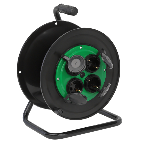 Катушка пластиковая 4 розетки с заземлением и защитным крышками. IP44