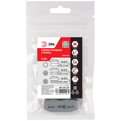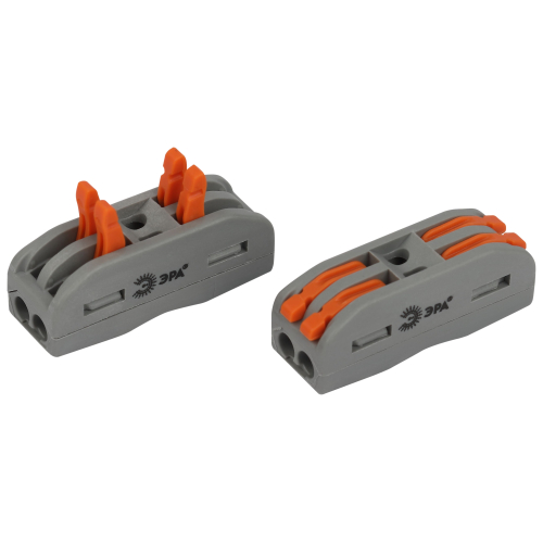 Универсальные проходные клеммы 222 серии с рычагами ЭРА предназначены для создания многократных соединений всех типов проводников (медных одножильных и многожильных, оконцованных втулочными наконечниками НШвИ) без использования специального инструмента. При подсоединении проводников с изолированными наконечниками НШвИ их максимальное сечение должно быть на один размер меньше максимального сечения клеммы.