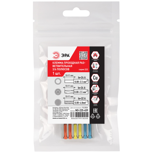 Универсальные проходные разветвительные клеммы 222 серии с рычагами ЭРА предназначены для создания многократных соединений и размножения контактов всех типов проводников (медных одножильных и многожильных, оконцованных втулочными наконечниками НШвИ) без использования специального инструмента.