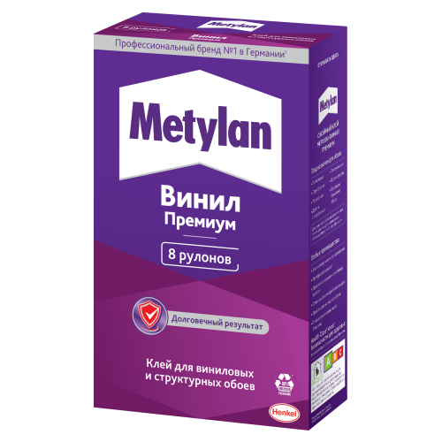 Клей для виниловых и структурных обоев. Преимущества: розовый индикатор для контроля нанесения, исчезает сразу после высыхания обоев; готовится за 3 минуты; высокая прочность приклеивания; противогрибковая защита обоев; идеален для любых помещений, в том числе с повышенной влажностью; готовый клей можно хранить в закрытой таре до 10 дней