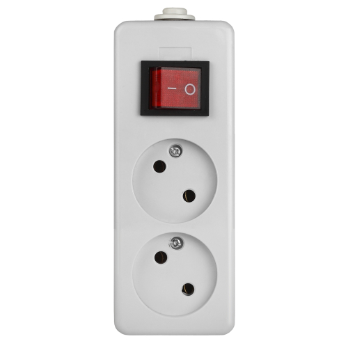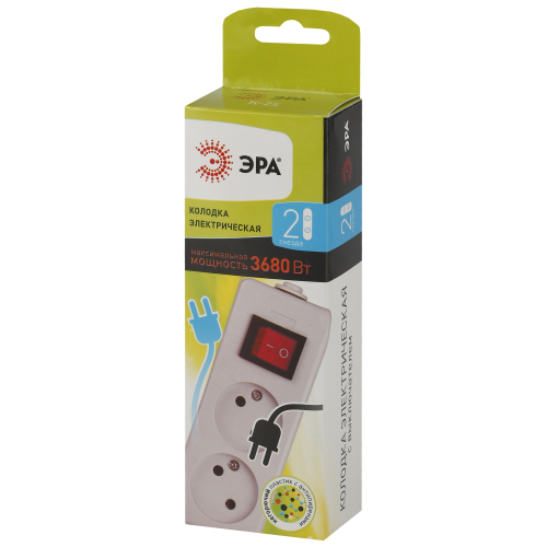Колодка ЭРА K-2s. На 2 розетки без зазeмления с выключателем. Максимальная мощность 10 А/2200. Для кабеля сечением до 2x1мм2.