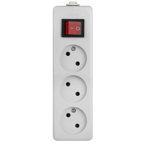 Колодка ЭРА K-3s. На 3 розетки без зазeмления с выключателем. Максимальная мощность 10 А/2200. Для кабеля сечением до 2x1мм2.