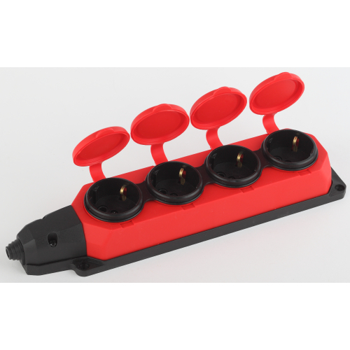 Колодка электрическая каучуковая Эра K-4e-RED-IP44 c заземлением, 4 розетки. Корпус выполнен из пыле- и влаго- защищенного материала (каучук). Рассчитана на максимальную мощность 16А / 3500 Вт и для подключения кабеля сечением до 2,5 мм2. Электрическая колодка подойдет для тех, кто хочет сделать удлинитель самостоятельно. Также может использоваться как накладные розеточные блоки в подсобных помещениях.