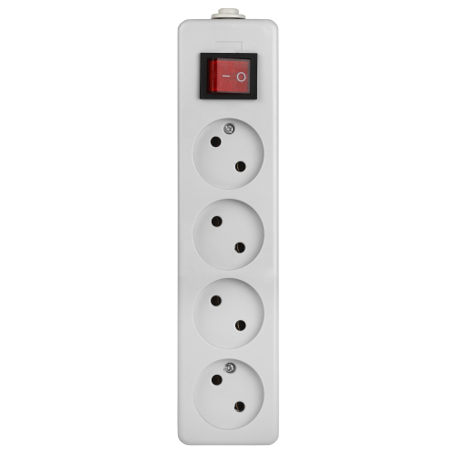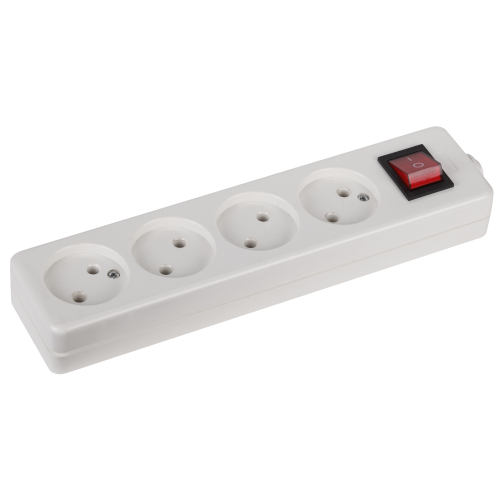 Колодка ЭРА K-4s. На 4 розетки без зазeмления с выключателем. Максимальная мощность 10 А/2200. Для кабеля сечением до 2x1мм2.