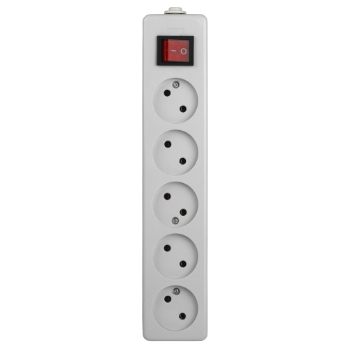 Колодка ЭРА K-5s. На 5 розеток без зазeмления с выключателем. Максимальная мощность 10 А/2200. Для кабеля сечением до 2x1мм2.