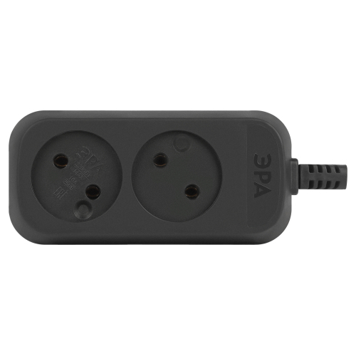 Колодка ЭРА KX-2-B на 2 розетки, без заземления, черная. Максимальная мощность - 10 А/2200 Вт. Для кабеля до 2х1мм2