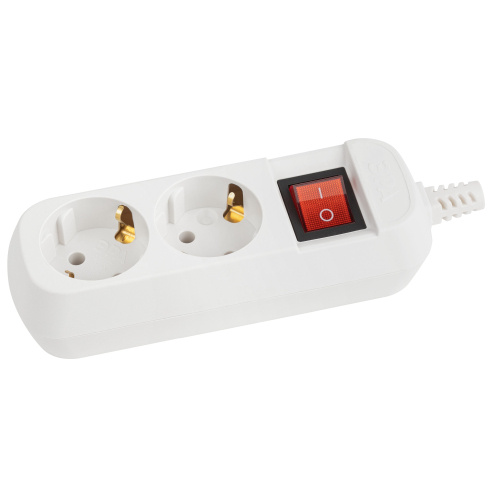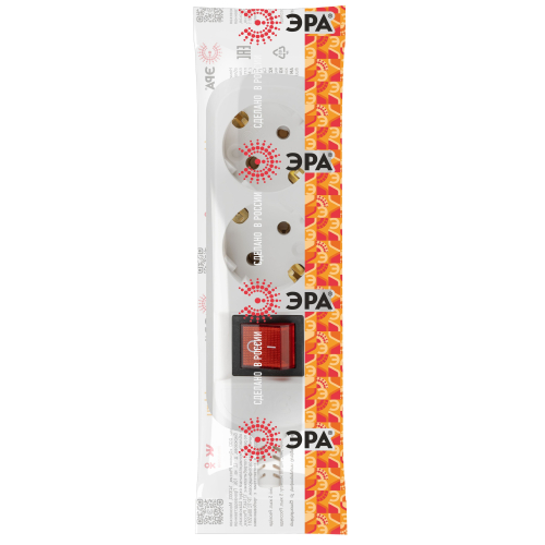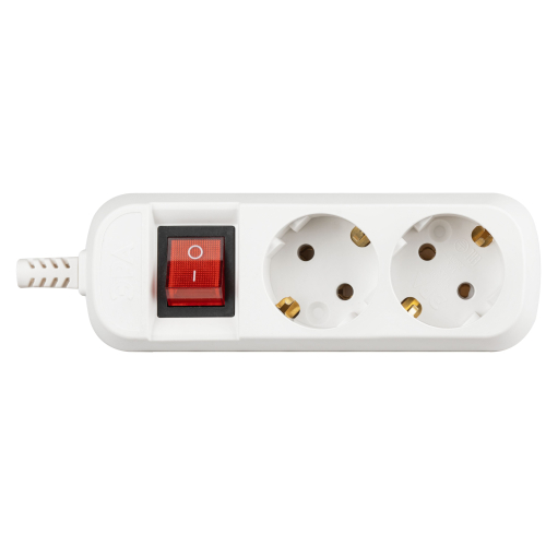 Колодка ЭРА KX-2es на 2 розетки с заземлением с выключателем белая. Максимальная мощность - 16 А/3500 Вт. Для кабеля до 3х1,5мм2
