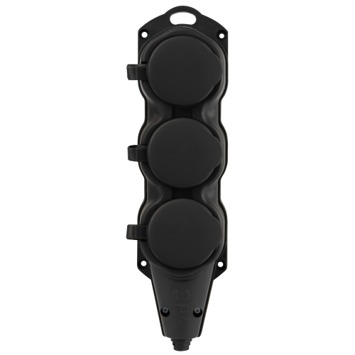 Каучуковая колодка ЭРА KX-3e-B-IP44 3 гнезда, с заземлением, черная, для подключения кабеля (без разбора корпуса). Съёмная крышка. IP44-защита от пыли и влаги. Максимальная мощность 16А/3500Вт. Для кабеля сечением до 3x2,5мм2.