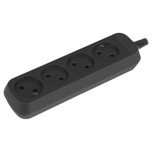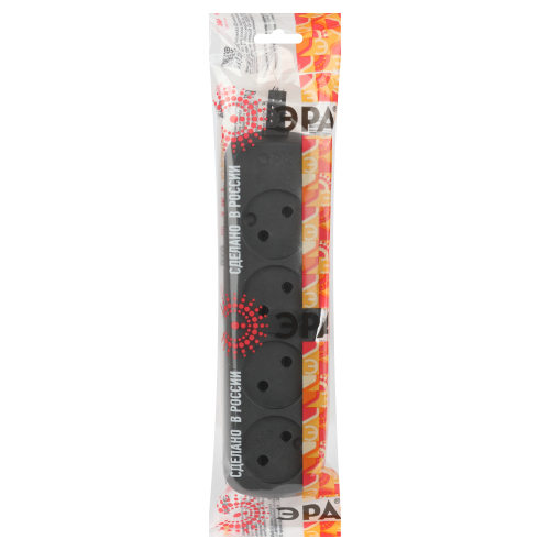 Колодка ЭРА KX-4-B на 4 розетки, без заземления, черная. Максимальная мощность - 10 А/2200 Вт. Для кабеля до 2х1мм2