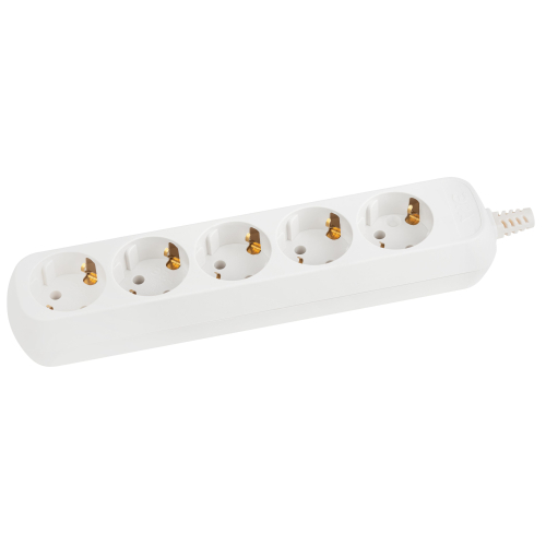 Колодка ЭРА KX-5e на 5 розеток с заземлением белая. Максимальная мощность - 16 А/3500 Вт. Для кабеля до 3х1,5мм2