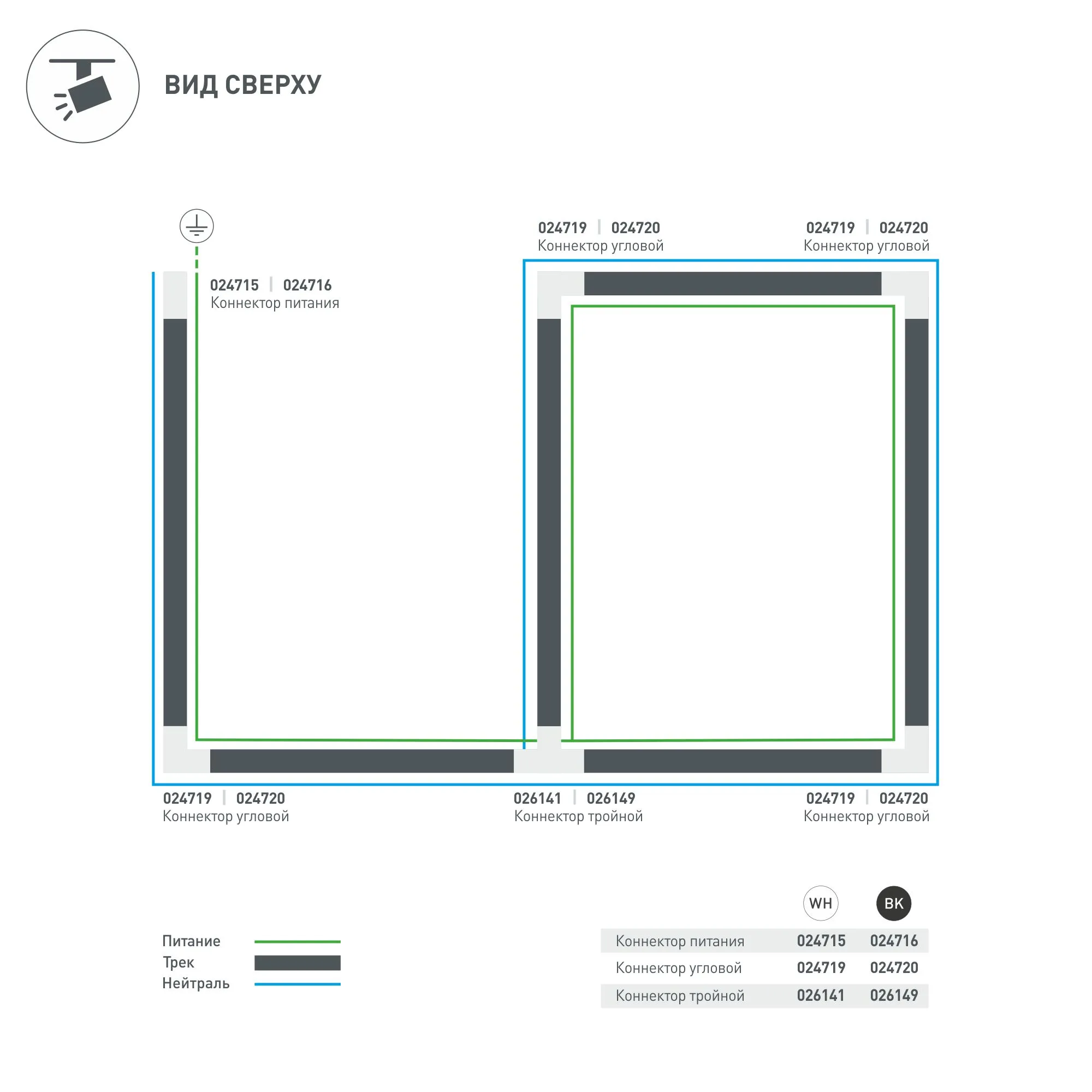 T-образный тройной коннектор LGD-4TR-CON-INT-L2-WH (C) для 3-фазных треков 4TR. Направление соединений внутри/слева происходит относительно контакта заземления системы. При использовании с треками и аксессуарами другой серии возможно отличие по цвету.
