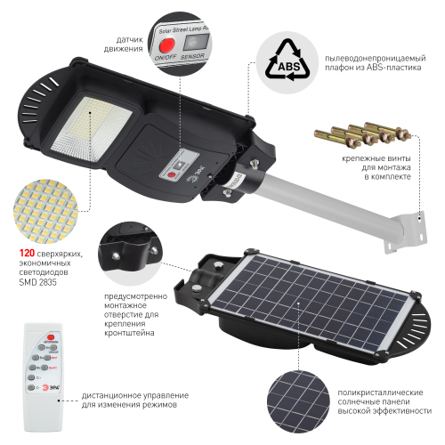 Имеют авторежим, позволяющий с успехом экономить заряд. В течение первого часа после включения светят со 100% яркостью, следующие 3 часа - с 70% яркостью и далее до рассвета - с 30% яркостью. Так мы получаем максимально яркий свет в нужное время (вечером, сразу после захода солнца) и гарантию того, что дополнительного освещения хватит до самого утра. Ещё одно важное преимущество для экономии заряда - в светильники встроен датчик движения. Освещение будет включено только в тот период, когда рядом со светильником находятся люди. Это значит, что светильники не будут работать ночью "зря". Обе эти функции - и авторежим, и датчик движения - можно отключать, если для вас они неактуальны. И снова включать, если данные опции понадобились. В комплекте поставляется пульт дистанционного управления, который позволяет на расстоянии включать и выключать свет, отключать датчик движения, устанавливать таймер работы, регулировать яркость. Надёжно защищены от влаги и пыли (IP65) и отлично работают в широком температурном диапазоне (от -20°C до +60°C). Оснащены морозоустойчивым сменным аккумулятором Li-FePO4.