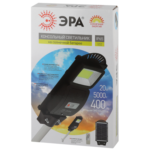 Консольные уличные LED-светильники ЭРА на солнечных батареях эффективно работают круглый год. Солнечная батарея встроена в корпус и занимает всю внешнюю часть плафона. На внутренней части размещены светодиодные платы (одна или несколько - в звисимости от модели) с яркими и экономичными LED-элементами COB последнего поколения и широкими светоотражателями.