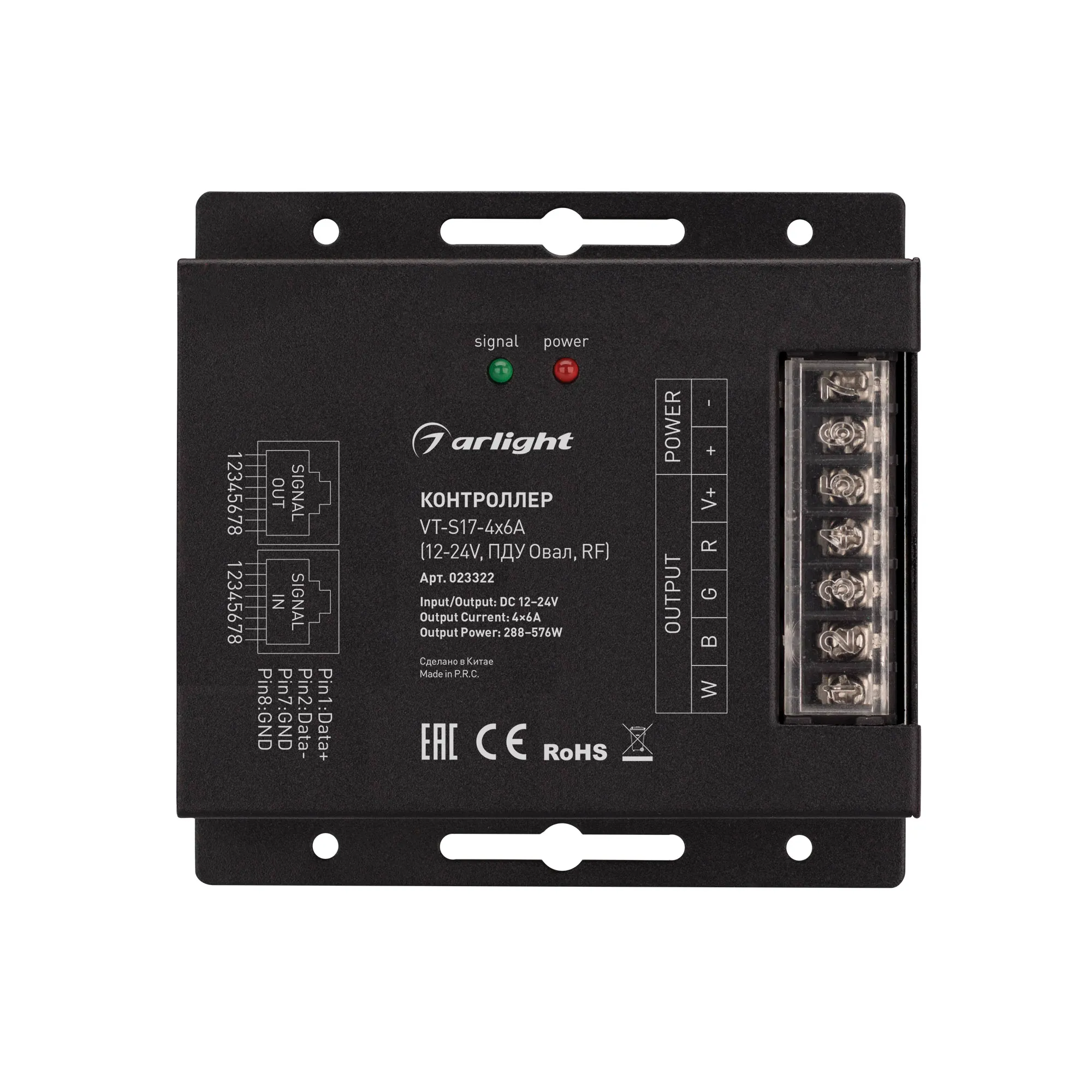 Комплект: 4-канальный диммер с радиопультом черного цвета с сенсорным кольцом, для управления мультицветными RGB и RGBW светодиодными лентами. Этот комплект устройств позволит легко и удобно регулировать цвет, яркость освещения и осуществлять включение и выключение света. Питание диммера имеет диапазон напряжений от 12В до 24В, максимальный ток 6А на 1 канал, максимальная мощность 288-576Вт (в зависимости от напряжения питания). Диммер имеет порты RJ45 для возможности проводного соединения устройств между собой и синхронизации их работы. При потере питания диммера последнее состояние яркости и цвета сохраняется. Питание пульта осуществляется от 3-х батареек ААА. Габариты диммера составляют 91x88x27мм, габариты пульта составляют 114х56х23мм.