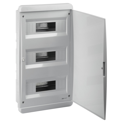 Встраиваемый пластиковый корпус ЭРА COMFORT ЩРВ-П-36 для установки 36 модулей. Дверца закрытого типа (непрозрачная). Предусмотрена регулируемая по глубине DIN-рейка, повышающая удобство монтажа и сборки. Степень защиты — IP40.