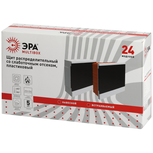 Щит со слаботочным отсеком ЭРА Multibox предназначен для сборки силовых, слаботочных, телекоммуникационных и комбинированных щитов распределительного типа с использованием мультимедийных устройств. Модульное оборудование устанавливается на DIN-рейки. На монтажные панели – ТВ-разветвители, Wi-Fi роутеры, патч-панели и другое слаботочное оборудование. Крышка бокса светопрозрачная, имеет фиксатор, который надежно фиксирует положение дверцы в закрытом положении. Щит устанавливается как в бетонные и кирпичные стены, так и в гипсокартон.Размер монтажной панели для крепления слаботочных устройств 100*200 мм. В комплектацию щита входит DIN рейка = 1 штука ( 2 штуки для 24 модульного шкафа), монтажная панель, элемент крепления DIN рейки. Шина N. для встроенного варианта щита в комплект входят клипсы- элементы крепления в гипсокартонные стены