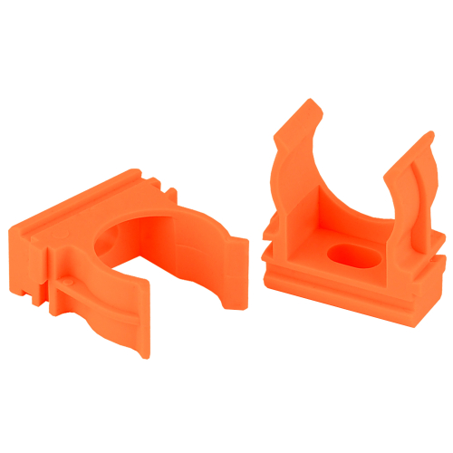 Используется для крепления гофрированных и гладких труб к поверхности стен или потолка. Для крепления к поверхности в крепёж-клипсе предусмотрено технологическое отверстие под саморез или дюбель.
