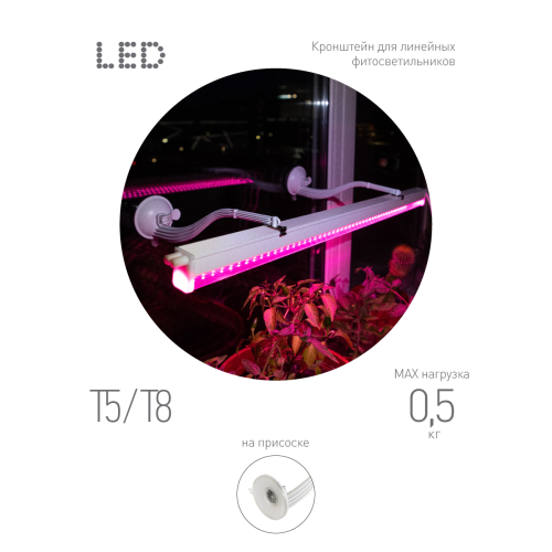 Удобное и эстетичное решение для размещения света над растениями. Легко фиксируется на стекло или любую другую гладкую поверхность. Идеален для линейных фитосветильников или фитоламп. Выдерживает даже мощные 50-ваттные фитопрожекторы в тяжёлом алюминиевом корпусе. Дизайн кронштейна создан собственным дизайнерским бюро ЭРА: не имеет острых углов, обтекаемая форма выглядит аккуратно, базовый белый цвет позволит успешно вписать кронштейн в любой интерьер. Держатель изготовлен из прочного поликарбоната. Выдерживает нагрузку до 1 килограмма 200 граммов. Рассчитан на постоянную нагрузку - 1 кг. В комплекте 2 винта для крепления, скобы светильника или клипсы лампы на кронштейн.