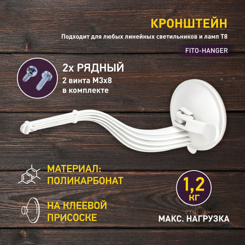 Удобное и эстетичное решение для размещения фитосвета над растениями. Легко фиксируется на стекло или любую другую гладкую поверхность. Идеален для линейных фитосветильников или фитоламп. Выдерживает даже мощные 50-ваттные фитопрожекторы в тяжёлом алюминиевом корпусе. Дизайн кронштейна создан собственным дизайнерским бюро ЭРА: не имеет острых углов, обтекаемая форма выглядит аккуратно, базовый белый цвет позволит успешно вписать кронштейн в любой интерьер. Держатель изготовлен из прочного поликарбоната. Выдерживает нагрузку до 1 килограмма 200 граммов. Рассчитан на постоянную нагрузку - 1 кг. В комплекте 2 винта для крепления, скобы светильника или клипсы лампы на кронштейн (скобы входят в комплект).