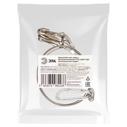 Тросовый подвес ЭРА FITO-сabel-rope для светильников и прожекторов. Подвес изготовлен из стали, длина тросов 0,3 м. Выдерживает вес до 10 кг.
