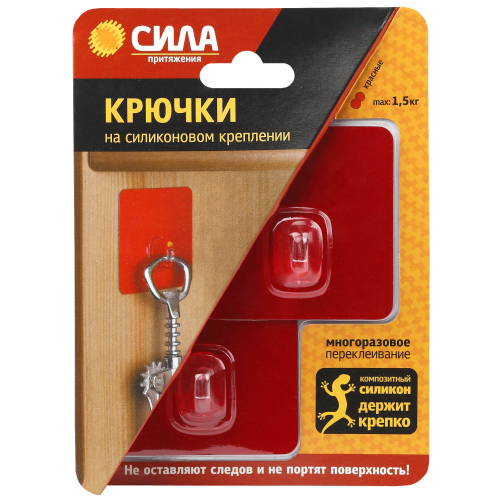 Эффективные крючки на силиконовом креплении СИЛА SH68-S2R-24. Набор из 2 самоклеящихся крючков красного цвета. Удачный способ избежать сверления стен или мебели. Инновационные крючки на композитной силиконовой основе надежно удерживают предметы весом до 1,5 кг. Доступно многоразовое переклеивание с сохранением функций. Не портят поверхность и не оставляют следов. Идеальны для кафеля, пластика, стекла, ламинированных поверхностей. Помогут организовать и украсить дом - быстро и без проблем. С успехом применяются во влажных помещениях - ванные комнаты, туалеты, кухни. Хорошее решение для подсобок, кладовых, гардеробных, прихожих. Удачный вариант для хранения и размещения "под рукой" полотенец, мочалок, кухонных принадлежностей, канцелярии, проводов. Сделают комфортным и гармоничным даже небольшое по площади пространство.