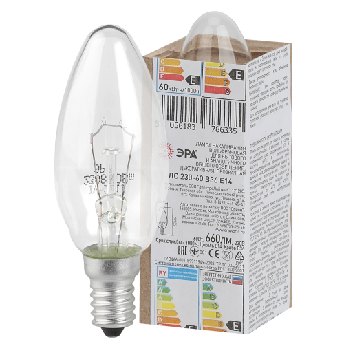 Освещение > Лампы накаливания ЭРА > Свеча (B/C)
