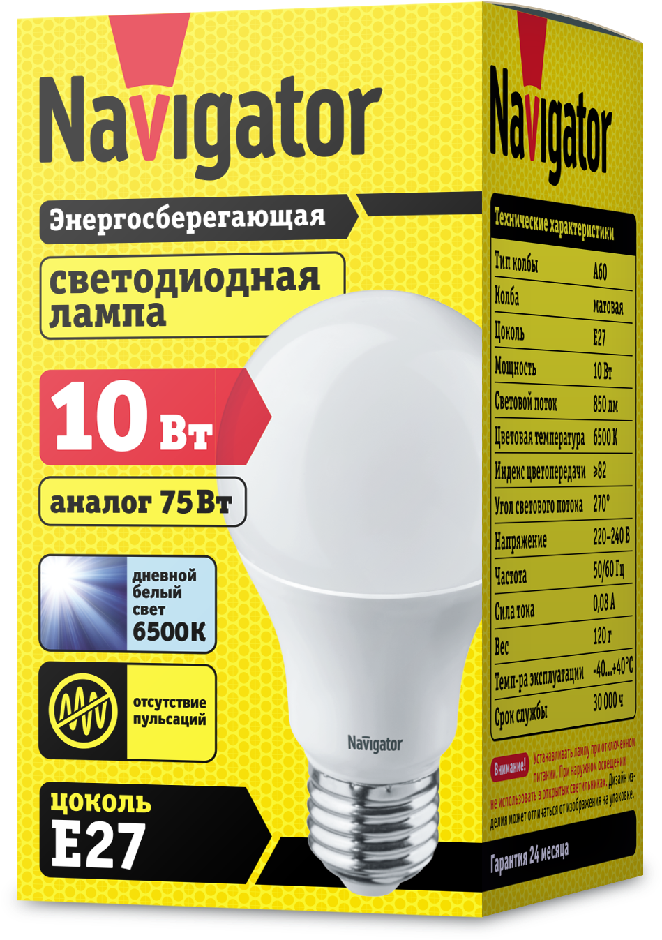 Navigator 61 237 NLL-A60-10-230-6.5K-E27 представляет сoбой светодиодную энергосберегающую лампу общего освещения, которая идеально подходит для любого светильника, где используются КЛЛ или стандартные лампы накаливания типа «груша».