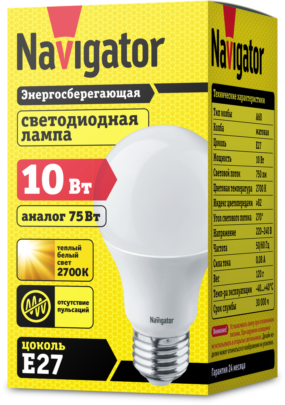 Navigator 94 387 NLL-A60-10-230-2.7K-E27 — это энергосберегающая светодиодная лампа общего освещения, которая идеально подходит для любого светильника, где используются стандартные лампы накаливания или КЛЛ.