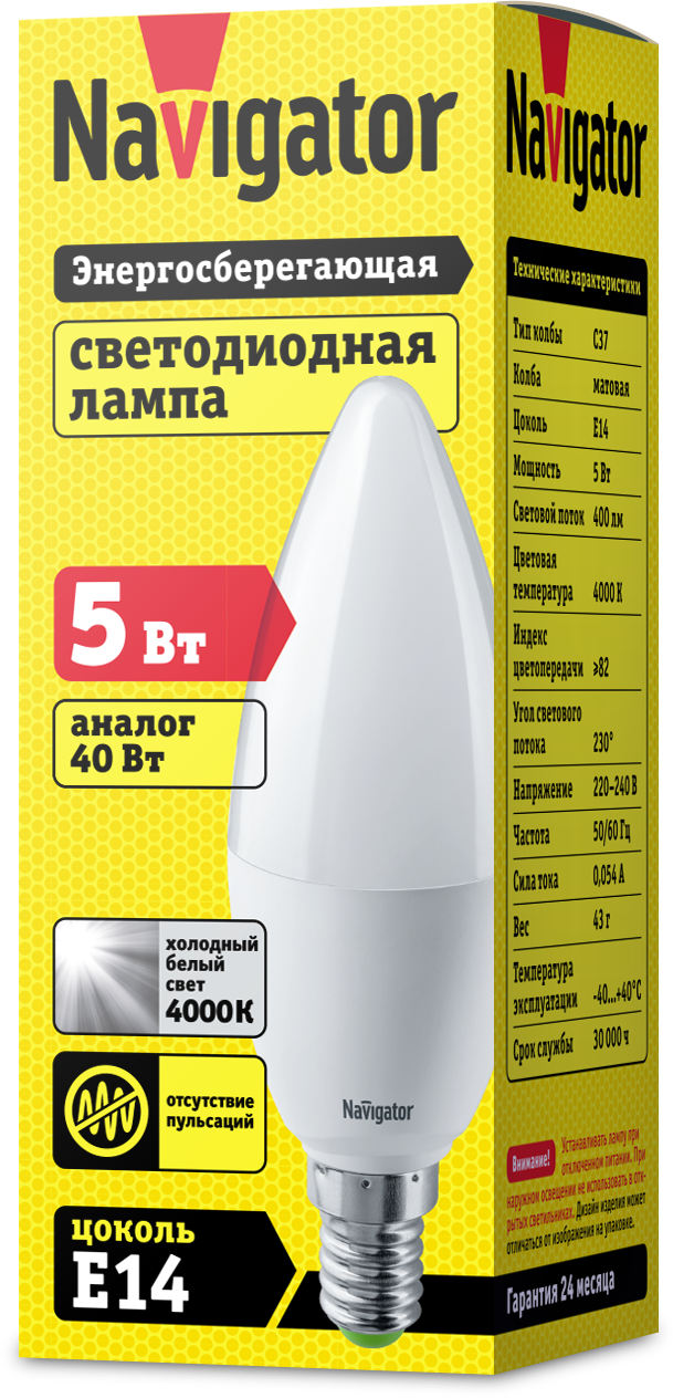 Лампа Navigator 94482 NLL-P-C37-5-230-4K-E14-FR — это современное и экономичное решение для освещения вашего дома или офиса.