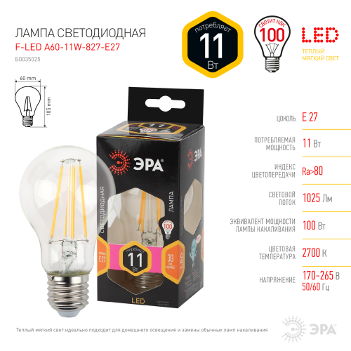 Освещение > Лампы филаментные ЭРА > Груша (A) F-LED