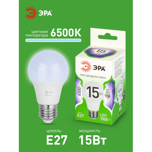Светодиодная лампа ЭРА LED A60-15W-865-E27 GL серии Green Line — эффективное решение для основного освещения. Лампочка Е27 мощностью 15 Вт излучает холодный белый свет (6500K) без мерцания. Классическая колба A60 (груша) и стандартный цоколь E27 делают её совместимой с люстрами, бра, настольными и напольными светильниками. Высота лампы: 108 мм. Светодиоды потребляют меньше электроэнергии и служат значительно дольше традиционных ламп накаливания: до 30 000 часов. Работает от сети 220 В, эквивалентна 80 Вт лампе накаливания. Светодиодные лампы ЭРА подходят для жилых и коммерческих помещений и обеспечивают стабильное освещение.