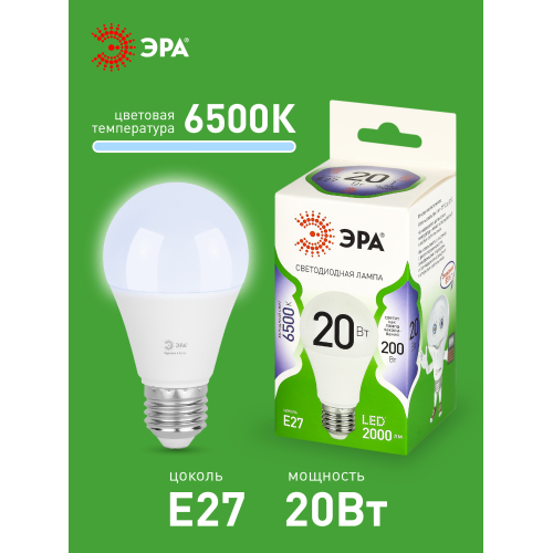 Светодиодная лампа ЭРА LED A60-20W-865-E27 GL серии Green Line — эффективное решение для основного освещения. Лампочка Е27 мощностью 20 Вт излучает холодный белый свет (6500K) без мерцания. Классическая колба A60 (груша) и стандартный цоколь E27 делают её совместимой с люстрами, бра, настольными и напольными светильниками. Высота лампы: 108 мм. Светодиоды потребляют меньше электроэнергии и служат значительно дольше традиционных ламп накаливания: до 30 000 часов. Работает от сети 220 В, эквивалентна 80 Вт лампе накаливания. Светодиодные лампы ЭРА подходят для жилых и коммерческих помещений и обеспечивают стабильное освещение.