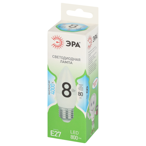 Светодиодная лампа ЭРА LED B35-8W-840-E27 GL серии Green Line — это яркий и экономичный источник света, заменяющий лампы накаливания. Лампочка с цоколем Е27 и мощностью 8 Вт излучает нейтральный белый свет (4000K) без мерцания. Элегантная форма B35 (свеча) и стандартный цоколь E27 позволяют использвать лампу в люстрах, бра, настольных и декоративных светильниках. Высота лампы: 100 мм. Работает от сети 220 В, эквивалентна 80 Вт лампе накаливания. Светодиодные лампы ЭРА потребляют минимум энергии и не нагреваются. Подходят для дома, гостиниц, ресторанов и коммерческих помещений, сочетая стиль и функциональность.