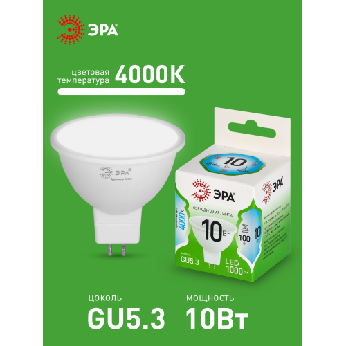 Светодиодная лампа ЭРА LED MR16-10W-840-GU5.3 GL серии Green Line — современный и энергоэффективный источник света. Лампочка мощностью 10 Вт с цоколем GU5.3 излучает нейтральный белый свет (4000K) без мерцания. Форма MR16 с отражателем обеспечивает направленный световой поток и идеально подходит для акцентного и основного освещения: в точечных светильниках, трековых системах, витринах и подвесных конструкциях. Потребляет минимум энергии, не нагревается, устойчива к перепадам напряжения и обеспечивает стабильное свечение. Работает от сети 220 В, эквивалентна 100 Вт лампе накаливания. Отличное решение для дома, офисов, магазинов, кафе и гостиниц.