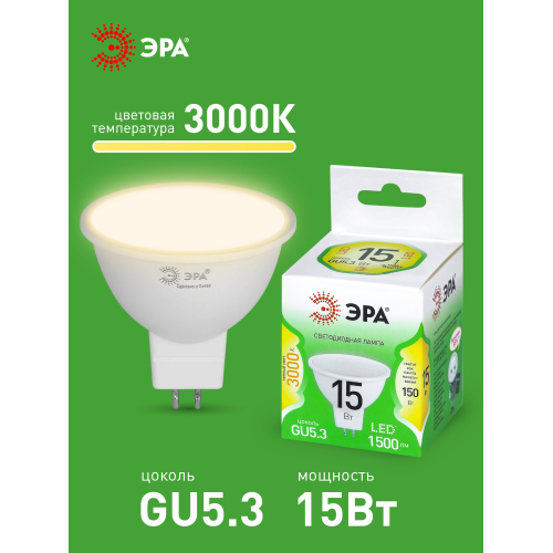 Светодиодная лампа ЭРА LED MR16-15W-830-GU5.3 GL серии Green Line — современный и энергоэффективный источник света. Лампочка мощностью 15 Вт с цоколем GU5.3 излучает теплый белый свет (3000K) без мерцания. Форма MR16 с отражателем обеспечивает направленный световой поток и идеально подходит для акцентного и основного освещения: в точечных светильниках, трековых системах, витринах и подвесных конструкциях. Потребляет минимум энергии, не нагревается, устойчива к перепадам напряжения и обеспечивает стабильное свечение. Работает от сети 220 В, эквивалентна 150 Вт лампе накаливания. Отличное решение для дома, офисов, магазинов, кафе и гостиниц