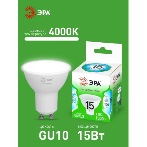 Светодиодная лампа ЭРА LED MR16-15W-840-GU10 GL серии Green Line — современный и энергоэффективный источник света. Лампочка мощностью 15 Вт с цоколем GU10 излучает нейтральный белый свет (4000K) без мерцания. Форма MR16 с отражателем обеспечивает направленный световой поток и идеально подходит для акцентного и основного освещения: в точечных светильниках, трековых системах, витринах и подвесных конструкциях. Потребляет минимум энергии, не нагревается, устойчива к перепадам напряжения и обеспечивает стабильное свечение. Работает от сети 220 В, эквивалентна 150 Вт лампе накаливания. Отличное решение для дома, офисов, магазинов, кафе и гостиниц