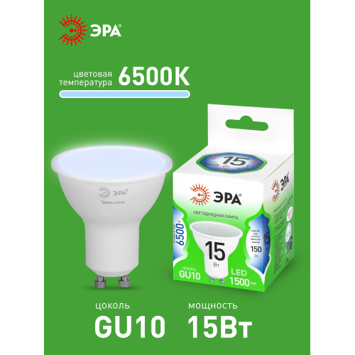 Светодиодная лампа ЭРА LED MR16-15W-865-GU10 GL серии Green Line — современный и энергоэффективный источник света. Лампочка мощностью 15 Вт с цоколем GU10 излучает холодный белый свет (6500K) без мерцания. Форма MR16 с отражателем обеспечивает направленный световой поток и идеально подходит для акцентного и основного освещения: в точечных светильниках, трековых системах, витринах и подвесных конструкциях. Потребляет минимум энергии, не нагревается, устойчива к перепадам напряжения и обеспечивает стабильное свечение. Работает от сети 220 В, эквивалентна 150 Вт лампе накаливания. Отличное решение для дома, офисов, магазинов, кафе и гостиниц