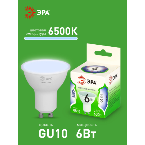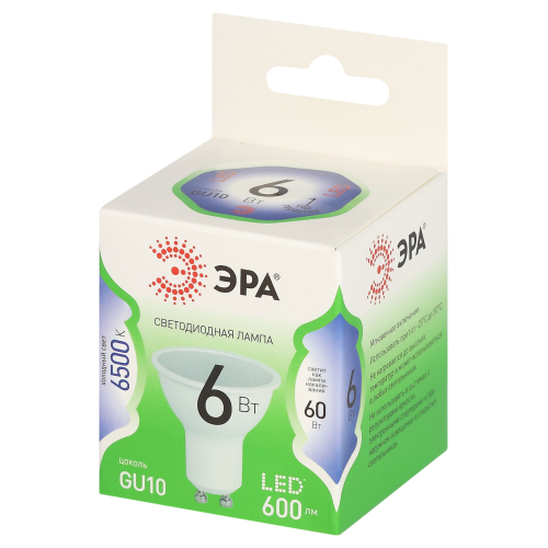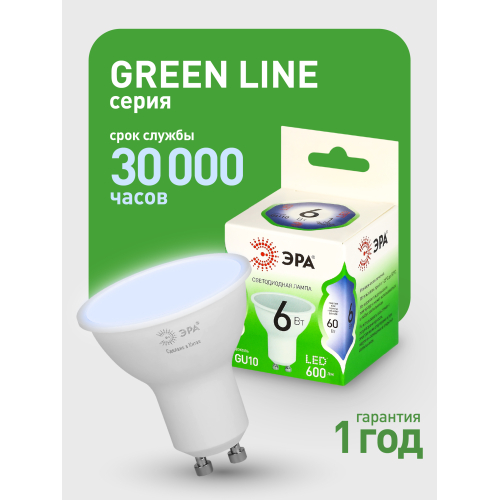 Светодиодная лампа ЭРА LED MR16-6W-865-GU10 GL серии Green Line — современный и энергоэффективный источник света. Лампочка мощностью 6 Вт с цоколем GU10 излучает холодный белый свет (6500K) без мерцания. Форма MR16 с отражателем обеспечивает направленный световой поток и идеально подходит для акцентного и основного освещения: в точечных светильниках, трековых системах, витринах и подвесных конструкциях. Потребляет минимум энергии, не нагревается, устойчива к перепадам напряжения и обеспечивает стабильное свечение. Работает от сети 220 В, эквивалентна 60 Вт лампе накаливания. Отличное решение для дома, офисов, магазинов, кафе и гостиниц.