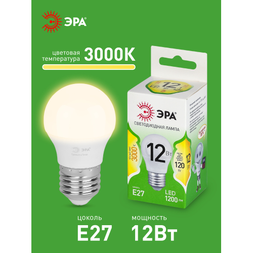Светодиодная лампа ЭРА LED P45-12W-830-E27 GL серии Green Line — компактный и энергоэффективный источник света. Лампочка мощностью 12 Вт с цоколем E27 излучает теплый белый свет (3000K), создавая комфортное и равномерное освещение. Высота лампы: 80 мм. Форма P45 (шар) и небольшой размер делают её отличным выбором для настольных ламп, бра, торшеров и декоративных светильников. Отличается низким энергопотреблением, долгим сроком службы и устойчивостью к перепадам напряжения. Работает от сети 220 В, эквивалентна 120 Вт лампе накаливания. Обеспечивает стабильное свечение без мерцания, идеально подходит для дома, гостиниц, кафе и коммерческих помещений.
