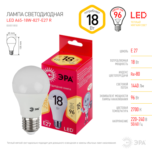 Освещение > Лампы светодиодные ЭРА RED LINE > Груша (A) RED