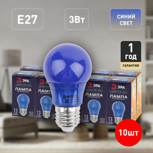 Декоративная светодиодная лампа ЭРА "Белт-лайт" с цоколем Е27 и колбой груша (А50) синего цвета. Мощность - 3 Вт. Идеально подходит для использования в гирлянде-конструкторе ЭРА "Белт-лайт", дающей возможность самостоятельного дизайна и монтажа праздничной иллюминации. В составе гирлянды-конструктора позволяет создавать уникальное праздничное освещение по индивидуальным параметрам и для конкретных задач. Вы сами выбираете длину подсветки, цвет ламп и расстояние между источниками света! Это идеальное решение для оформления витрин, общественных пространств. Другие элементы гирлянды-конструктора: патрон Б0049176, кабель Б0049175, набор для подключения (шнур питания с вилкой + коннектор) Б0049180, коннектор Б0049179, заглушка Б0049181, заглушка с крюком Б0049182. В ассортименте ЭРА LED-лампы "Белт-лайт" E27 разных цветов, в том числе прозрачные и матовые белые. Колбы изготовлены из лёгкого ударопрочного пластика, такие лампы удобно транспортировать, использовать и хранить. Цоколь - из алюминия. Лампы ЭРА "Белт-лайт" универсальны: подходят к любому светотехническому прибору с патроном для Е27. Создают необычное цветное свечение определённого оттенка. Помогают воплощать в жизнь смелые дизайнерские идеи.