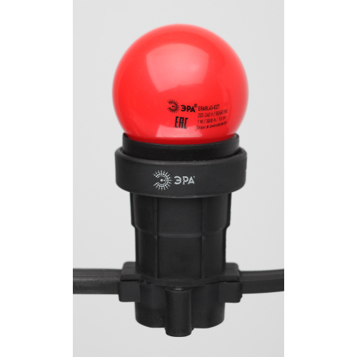 Декоративная светодиодная лампа ЭРА "Белт-лайт" с цоколем Е27 и колбой шар (Р45) красного цвета. Мощность - 1 Вт. Идеально подходит для использования в уличной гирлянде-конструкторе ЭРА "Белт-лайт", дающей возможность самостоятельного дизайна и монтажа праздничной иллюминации. В составе гирлянды-конструктора позволяет создавать уникальное праздничное освещение по индивидуальным параметрам и для конкретных задач. Вы сами выбираете длину подсветки, цвет ламп и расстояние между источниками света! Это идеальное решение для декора фасадов зданий, оформления витрин, общественных пространств на свежем воздухе. Другие элементы гирлянды-конструктора: патрон Б0049176, кабель Б0049175, набор для подключения (шнур питания с вилкой + коннектор) Б0049180, коннектор Б0049179, заглушка Б0049181, заглушка с крюком Б0049182. В ассортименте ЭРА LED-лампы "Белт-лайт" E27 разных цветов, в том числе прозрачные и матовые белые. Колбы изготовлены из лёгкого ударопрочного пластика, такие лампы удобно транспортировать, использовать и хранить. Цоколь - из алюминия. Лампы ЭРА "Белт-лайт" универсальны: подходят к любому светотехническому прибору с патроном для Е27. Создают необычное цветное свечение определённого оттенка. Помогают воплощать в жизнь смелые дизайнерские идеи.