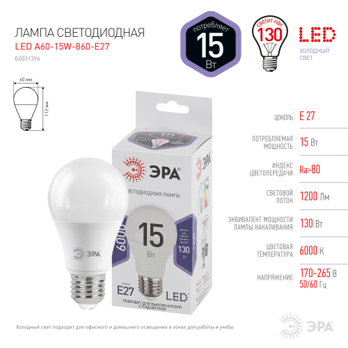 Экономичная светодиодная лампа ЭРА Серии Стандарт с отличными характеристиками для установки в люстры и все типы бытовых светильников - потолочные, настольные, бра. Бережёт электроэнергию, ярко светит, имеет долгий срок службы. Цветовая температура - холодный белый свет. Такое освещение бодрит, повышает работоспособность. Этот современный источник света создаёт комфортное и безопасное для глаз освещение.