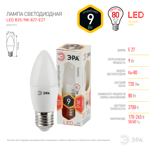 LED B35-9W-827-E27