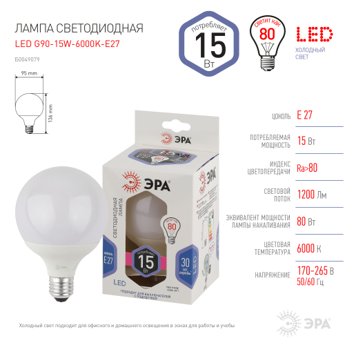 LED G95-15W-6000K-E27